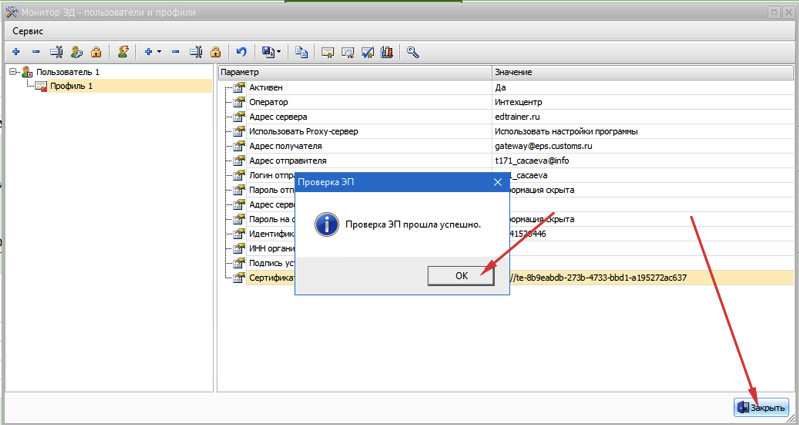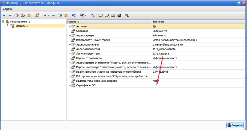 Настройка профилей Монитор ЭД