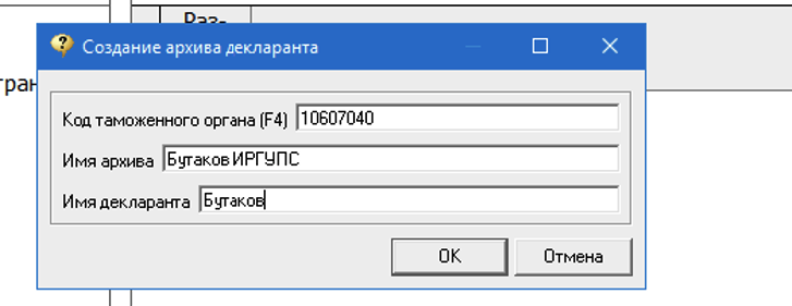 4. В появившемся окне заполнить поля (код таможенного поста можно выбрать любой из справочника) и нажать «Ок»