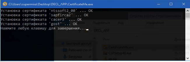 3. Запустить установщик сертификатов CertificateMe.exe.