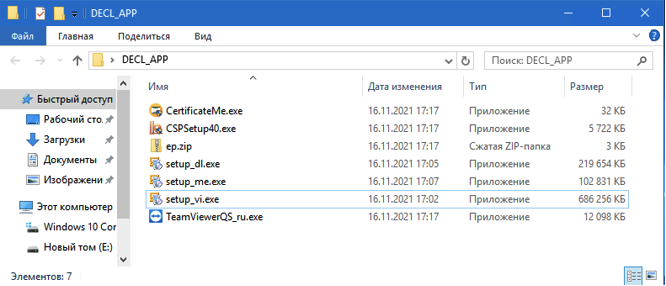 2. Установить программу ВЭД-Инфо, ВЭД-Декларант и Монитор ЭД. Для установки последовательно запускаем скачанные файл setup_vi.exe, setup_dl.exe, setup_me.exe и следуем инструкциям установщика.