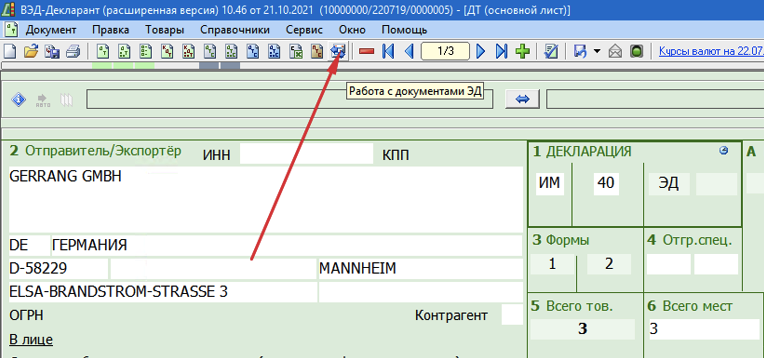 6. Закрыть и повторно открыть программу ВЭД-Декларант.