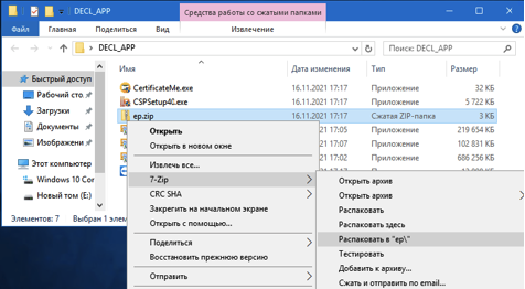 1. Распаковать архив ep.zip. В результате должна получится папка ep с 6 файлами.